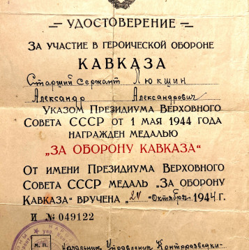 Июнь 1941 года-Призван по мобилизации Комсомольск- на - Амуре, прожекторная рота, прожекторист Февраль 1942- 113 отдельная стрелковая бригада- разведчик Август 1942- 13 отдельный стрелковый батальон при Управлении Контрразведки фронта Сев. Кавказа- связной Выполнял особые оперативно-боевые задания руководства УКР «СМЕРШ» на передовой линии фронта, с начала высадки наших частей на Керченском полуострове и до полного освобождения города Керчь. Награжден правительственной наградой - медалью «За отвагу», « За оборону Кавказа» В 1945 участвовал в боях за взятие Будапешта. Закончил войну в Вене, продолжал службу до 1950 г. После войны работал инкассатором в Госбанке СССР
