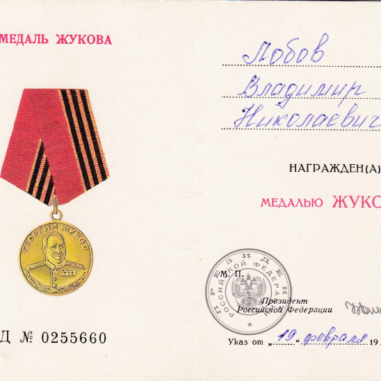 В феврале 1945 года войска 1-го Украинского фронта вышли на Одер - последнюю водную преграду на пути к Берлину и с ходу форсировали его. При форсировании этой реки и в боях за плацдармы на ее берегу советские воины показали чудеса доблести, отваги и героизма. Тысячи из них были удостоены высоких правительственных наград. Владимиру Николаевичу Лобову за смелость был вручен Орден Славы третьей степени.