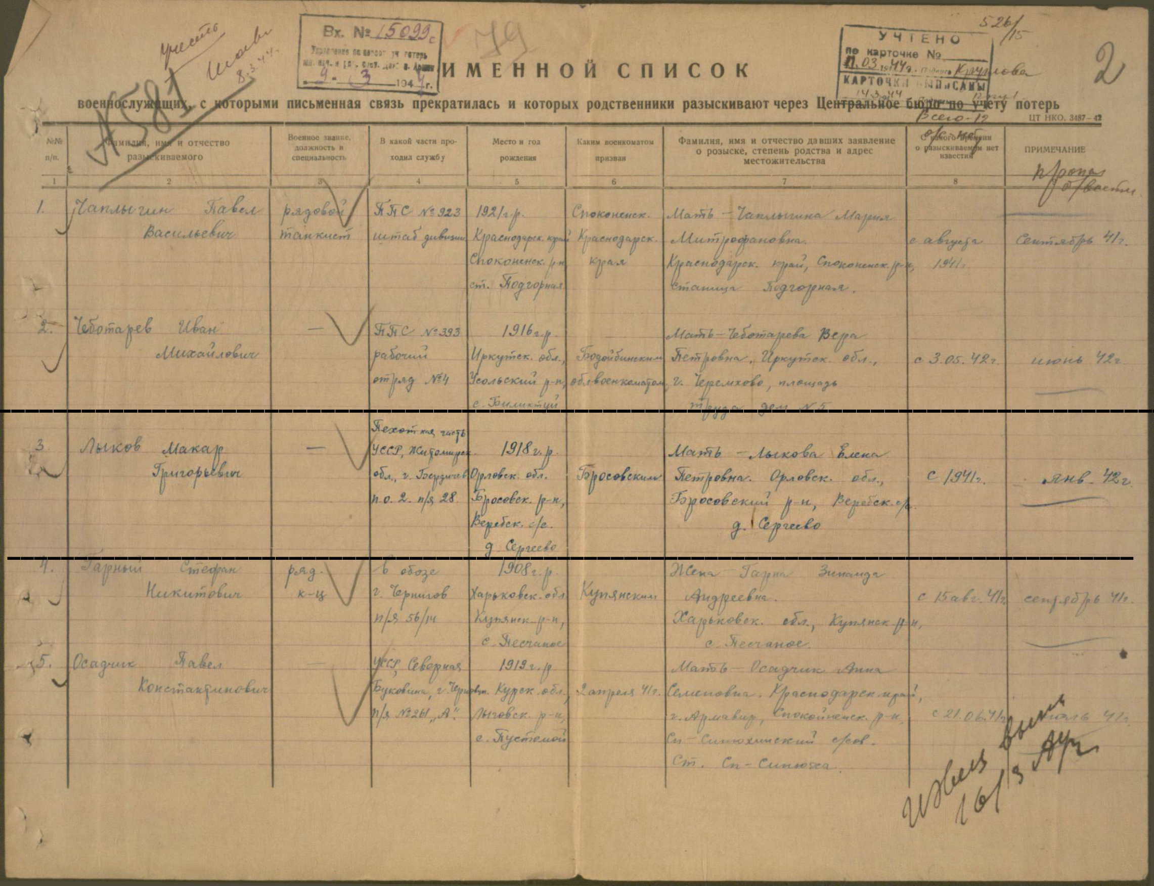 Лыков Макар Григорьевич (1918- 1941/1942г.). Место рождения: Орловская обл., Брасовский р-н, Веребским с/с, д. Сергеево.
