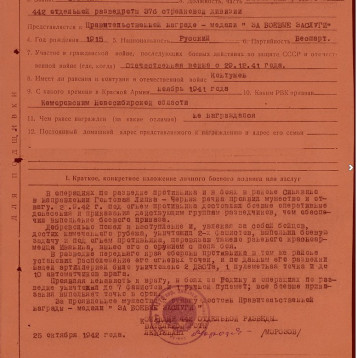 наградные документы : приказ, наградной лист, где описан подвиг, за