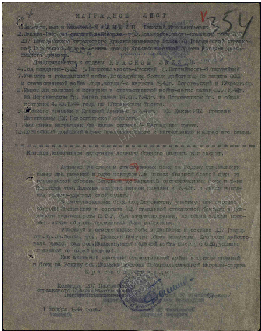 В 18 лет ушел на войну. После победы вернулся в родные места. Работал до своей кончины начальником пожарной команды в г. Мариинске.