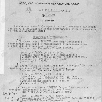 наградной лист на представление майора Мананкова Т. П. (посмертно) к званию