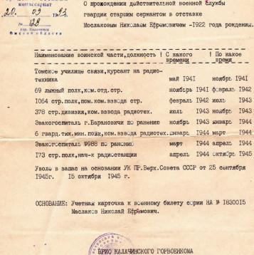 должности начальника радиостанции роты связи 173 стрелкового Выборского полка.