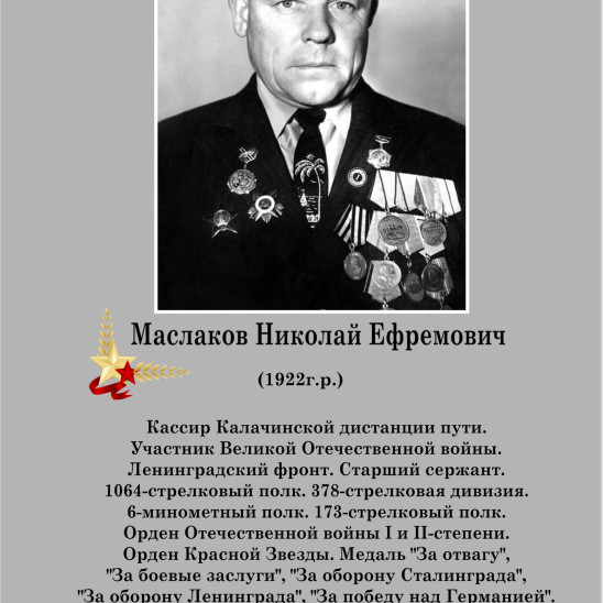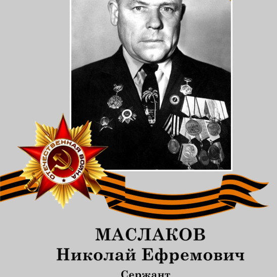 МАСЛАКОВ НИКОЛАЙ ЕФРЕМОВИЧ-(19.12.1922-04.06.2014) Участник Великой Отечественной войны.