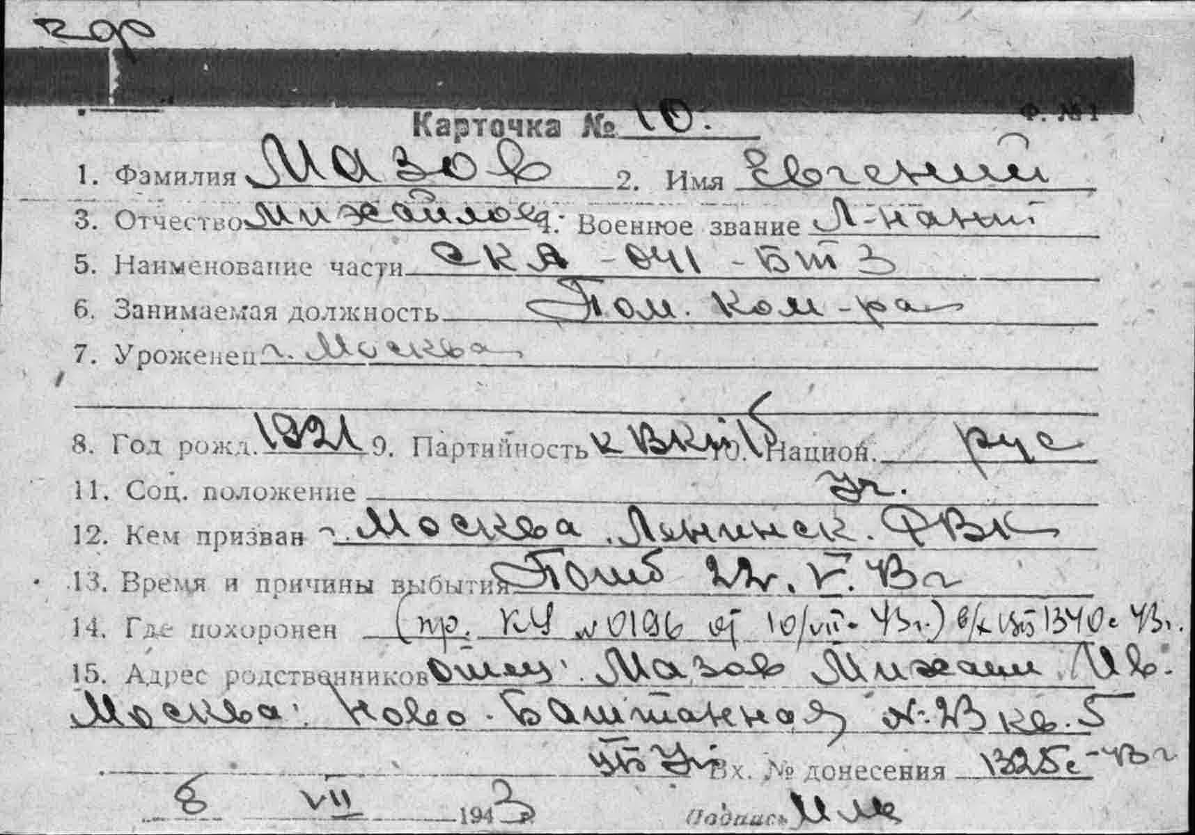 Призывался от туда же. Русский. Член ВКПб .Мой дядя, которого я никогда не