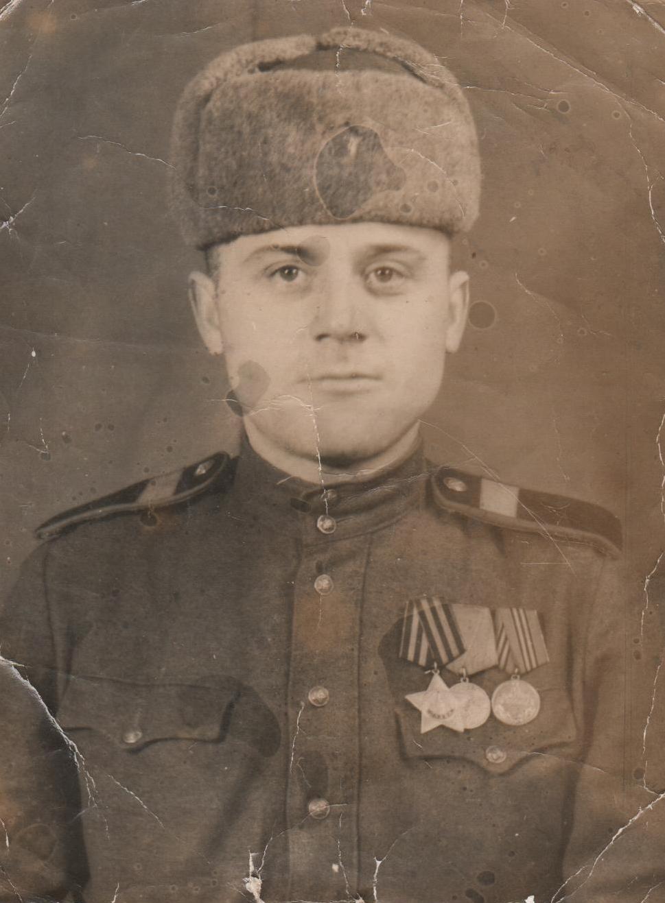 которую проходил на самой южной точке СССР – вблизи г. Кушка. Начало войны встретил в 18 танковом полку. После ранения проходил службу в 36-й Краснознаменной орденов Суворова, Кутузова танковой бригаде 11 танкового корпуса и дошел до Берлина. Имеет 3 ранения. Занимал должности радиста-пулеметчика, командира отделения связи, командира танкового орудия, механика-водителя.