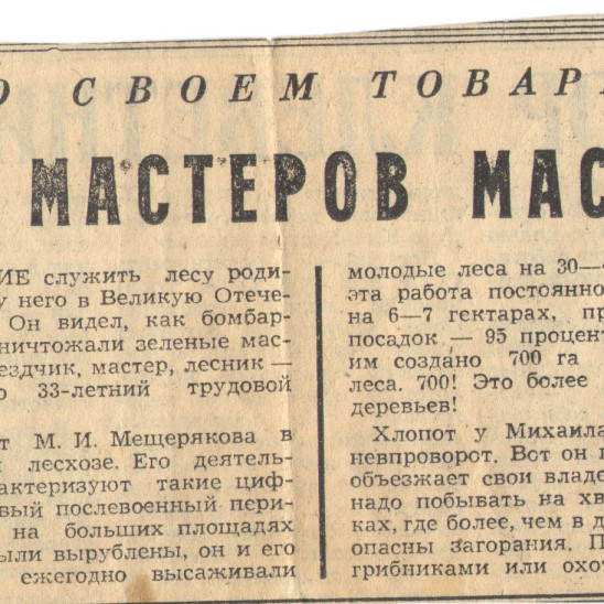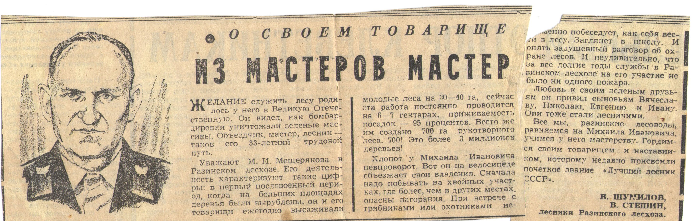 За добросовестную работу ему присваивают звание: "Лучший лесник СССР".