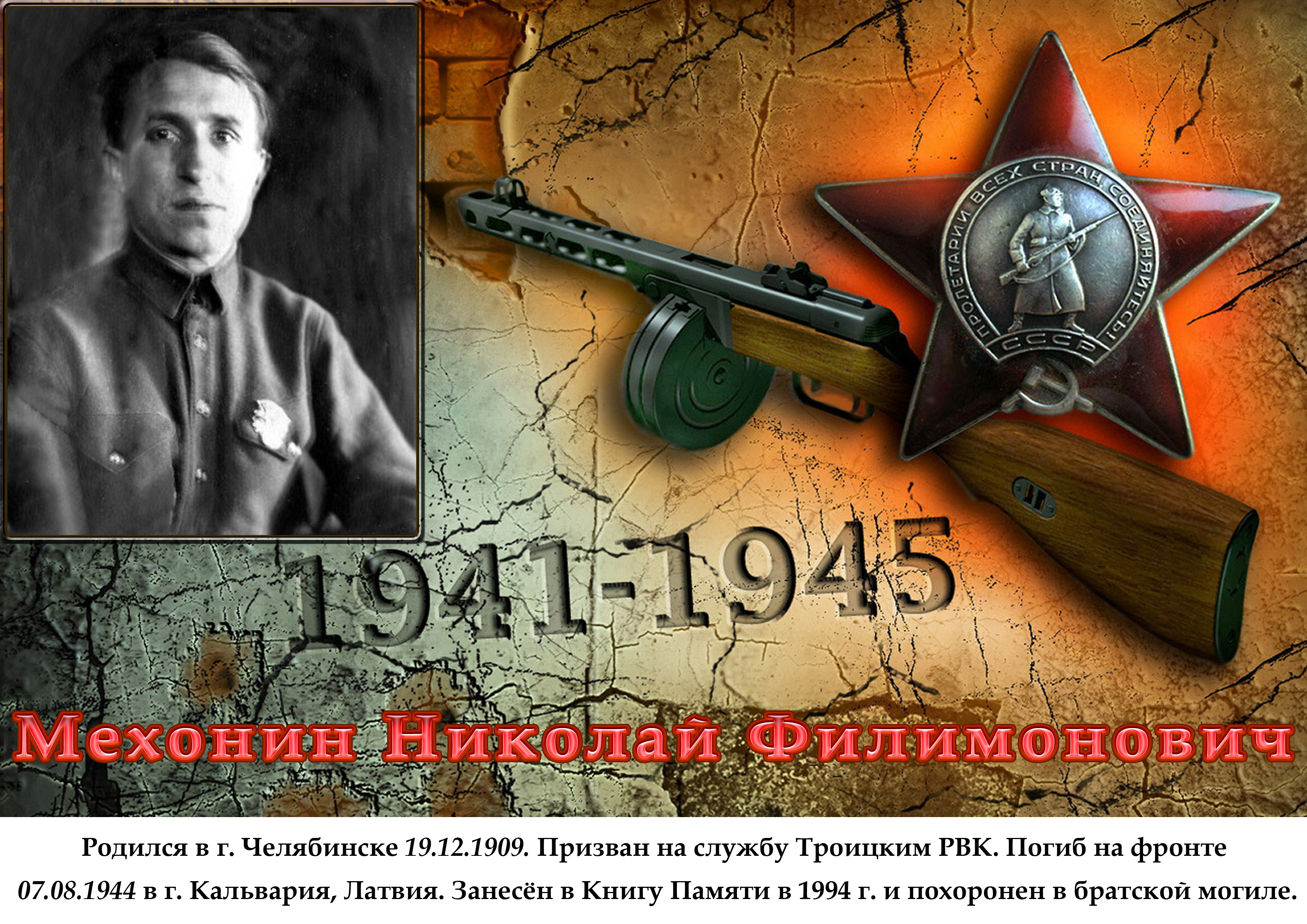 рядового солдата – Мехонина Николая Филимоновича занесена в книгу Памяти в 1994