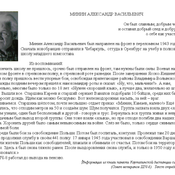 Мой дедушка МИНИН АЛЕКСАНДР ВАСИЛЬЕВИЧ родился 25 декабря 1926 года (но в свидетельстве о рождении записали дату рождения - 2 января 1926 года, т.е. по документам практически добавили 1 год жизни) в посёлке Черниговский Агаповского района Челябинской области, умер 26 ноября 1995 года в г. Карталы Челябинской области.