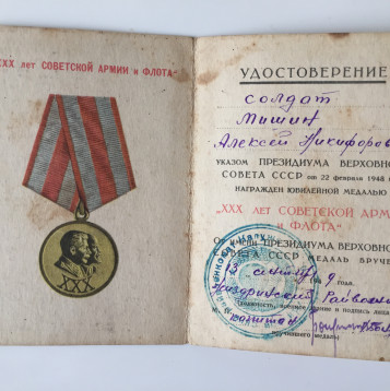 После окончания школы ему было 16 лет. На войну не брали и он приписал себе 2 года, что бы идти на фронт. По рассказам бабушки в 1943 году пришла похоронка, его считали погибшим. В 1945 он вернулся живым и невредимым.