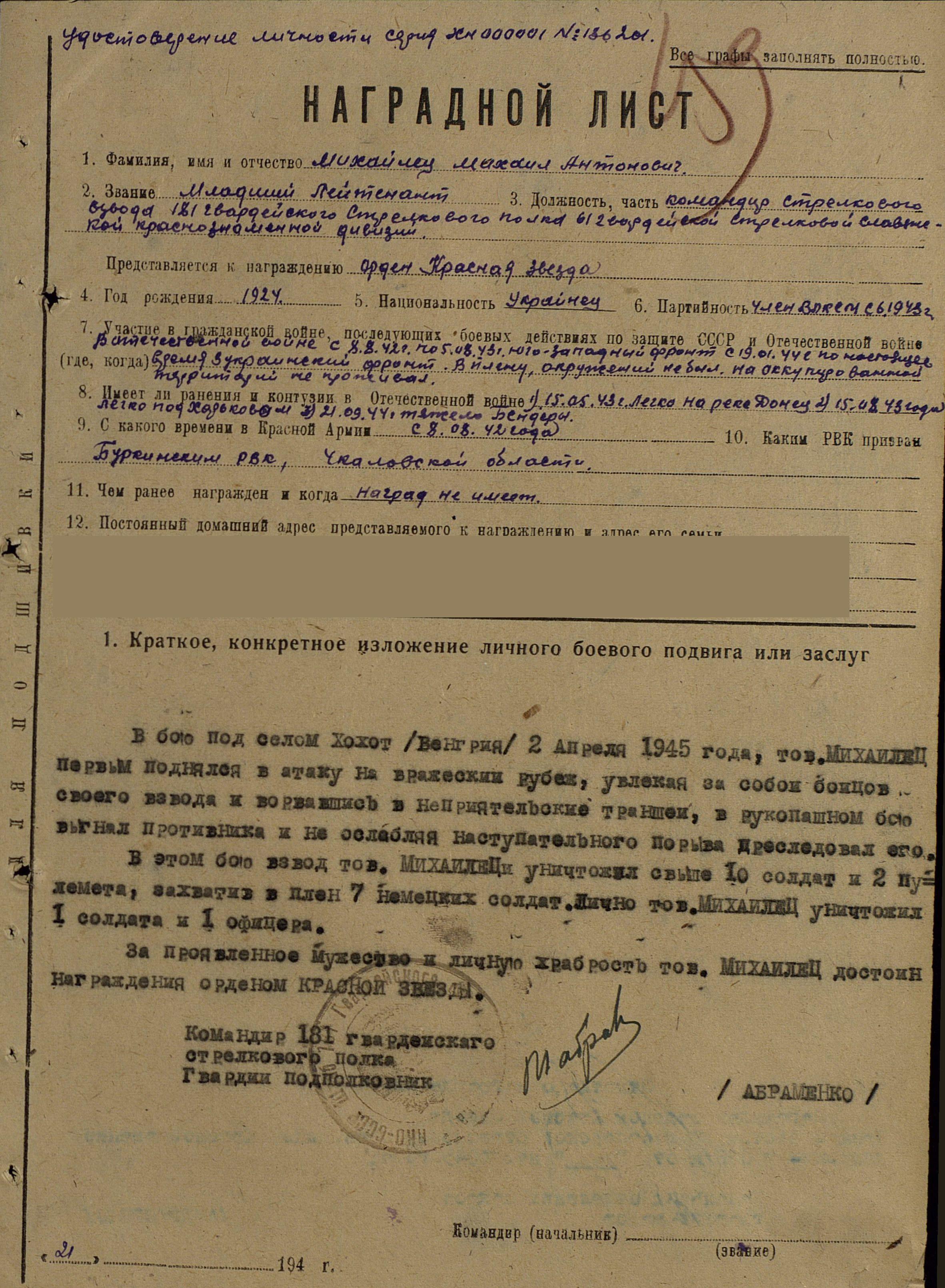 стрелковой Краснознамённой Славянской дивизии, был командиром стрелкового