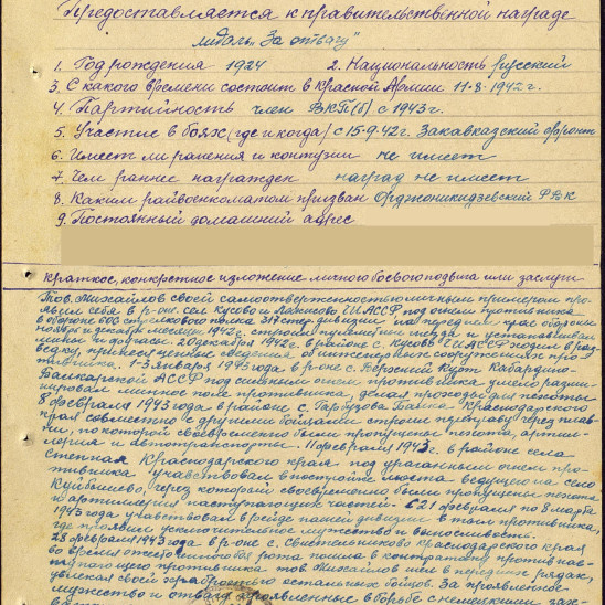 Родился в 1924 году в городе Грозном Чечено-Ингушской Республики. До войны успел поработать в Грозненском Трамвайном Депо электриком. Призван в 1942году. Он пошел воевать по документам старшего брата, так как самому ему еще не исполнилось 18 лет. Воевал в качестве сапера 361 отдельного саперного батальона 317 стрелковой дивизии на Закавказском фронте с августа 1942года по май 1943 года. С мая 1943года по декабрь 1943 года был дальномерщиком 257 артиллерийского зенитного полка. Определял скорость и дальность вражеских самолетов и давал наводку артиллеристам. С декабря 1943 года по март 1944 года стрелок 145 запасного стрелкового полка. Уволен в запас по ранению 28 марта 1943 года. Награжден медалью «За Отвагу». После Великой Отечественной Войны жил и работал в г.Грозный на заводе "Красный Молот" автоэлектриком. Был страстным любителем автомобилей, вникал во все тонкости, и считался "асом" в своем деле. На заводе его ценили, уважали и поощряли. За многочисленные рациональные предложения и изобретения дали квартиру в центре Грозного. Был очень любознательным и увлекающимся человеком. Интересовался поэзией и сочинял стихи. Увлекался фотосъёмкой. Его фотографии публиковались в журнале "Советское фото" и неоднократно в газете "Грозненский рабочий". Из Грозного Михайлов Алексей Тимофеевич с женой был вынужден уехать в 1996 году во время военных действий в Чечне. Умер в 2009 году в г.Щигры Курской области.