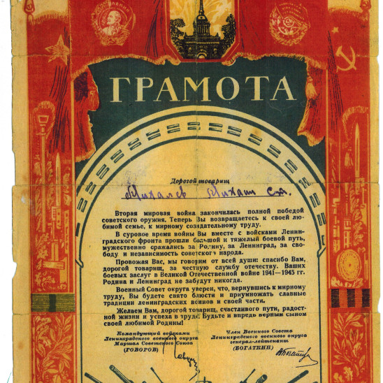 благодарностей, в том числе медалями и Грамотой за боевые заслуги в Великой