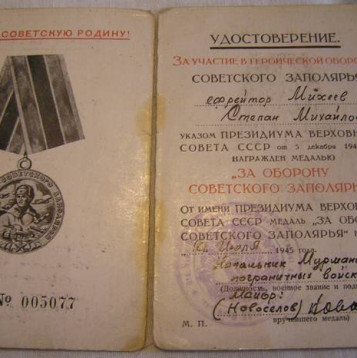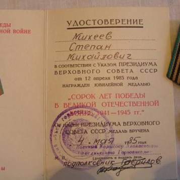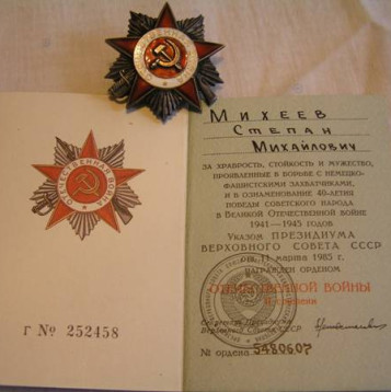 Степан Михайлович Михеев родился 05 августа 1921 года в деревне Евдокимово, Кичминского района, Кировской области. Образование - 5 классов, до войны имел специальность – токарь. Когда началась Великая Отечественная война, Степан Михайлович уже был призван на военную службу в 101 пограничный отряд НКВД Мурманской области, Печенгского района, на заставу у посёлка Никель. Из воспоминаний Степана Михайловича: "Застава спала. Тихо сидел дневальный, прислушиваясь к мирному дыханию товарищей. А ночи будто и не было. Солнце, не успев уйти за горизонт, снова расплескало свои лучи по сопкам, по озёрам, по вершинам сосен. Солдат спит, служба идёт. Спал и Степан Михеев, призванный на границу девять месяцев назад.- Застава, в ружьё! – этот крик дежурного, словно удар бича, взметнул одеяла, и пограничники выбежали из казармы. На улице стоял сплошной гул. В небе черными птицами плыли на восток самолеты с крестами на крыльях.«Неужели началось?» - подумал Степан – «Видно, прав был немец перебежчик, сообщивший, что на нашем направлении по ту сторону границы сосредотачиваются пять немецких дивизий».Захлопали выстрелы. Это пограничники вели стрельбу из винтовок по вражеским самолётам. Один из самолётов отвернул от строя, развернулся и, поливая землю свинцовым дождём, пронёсся над заставой.Так начал войну с фашистами Степан Михайлович Михеев. Приказа об отступлении не было. Застава, как и весь погранотряд, встретив передовые немецкие части, мужественно дралась с превосходящим по силе противником. Фашисты были наглыми и самоуверенными: границу переходили строевым шагом. Расплата не заставила себя ждать. Первые метры на нашей земле для многих захватчиков оказались последними. После, в газетах писали, что на участке этого погранотряда было истреблено до 6 тысяч фашистов. Бои на границе продолжались до 2 июля. А потом немцы обошли наши отряды, и пограничники оказались во вражеском тылу. Получив приказ об отступлении, они по компасу вышли на рубеж озера Кайлара. Здесь снова жестокий бой. Здесь, у озера, пограничники переформировались в грозную боевую единицу. Отряду был дан приказ находиться в тылу врага и выполнять специальные задания командования. Степан Михеев стал начальником фронтовой радиостанции. Почти два года длились дерзкие рейды пограничников по вражеским тылам. Командовал отрядом человек исключительной храбрости полковник Жуков. Советские воины проводили смелые налёты на аэродромы, железнодорожные станции, уничтожали составы с живой слой и техникой врага, мосты. Впрочем, об этом лучше расскажет «песня о Жуковском отряде» (которую Степан очень сильно любил и пел до последних дней своей жизни): Третьи сутки не смолкает вьюга,Все пути и тропы замело,Дуют ветры с Севера и Юга,Напряженно, сумрачно и зло.Но отряд идёт без передышки,По глухим, заснеженным местам,Молчаливый, сдержанный, неслышный, Он прорвётся к вражеским тылам. Ни крутые северные сопки, Ни озёр предательская гладь, Не в снегу затерянные тропки, Не задержат Жуковский отряд.Не страшна им северная вьюга, Все они сумеют разглядеть,Ночи им надёжные подруги, Для бесстрашных волевых людей. Все равно виски у командира, Серебрит суровая война, Всё равно спокойствия и мира, Эта ночь не подарила нам.На пути – коварные озёра,До колен глотают сапоги,Но отряд пробиться должен скоро,Сквозь заслоны 