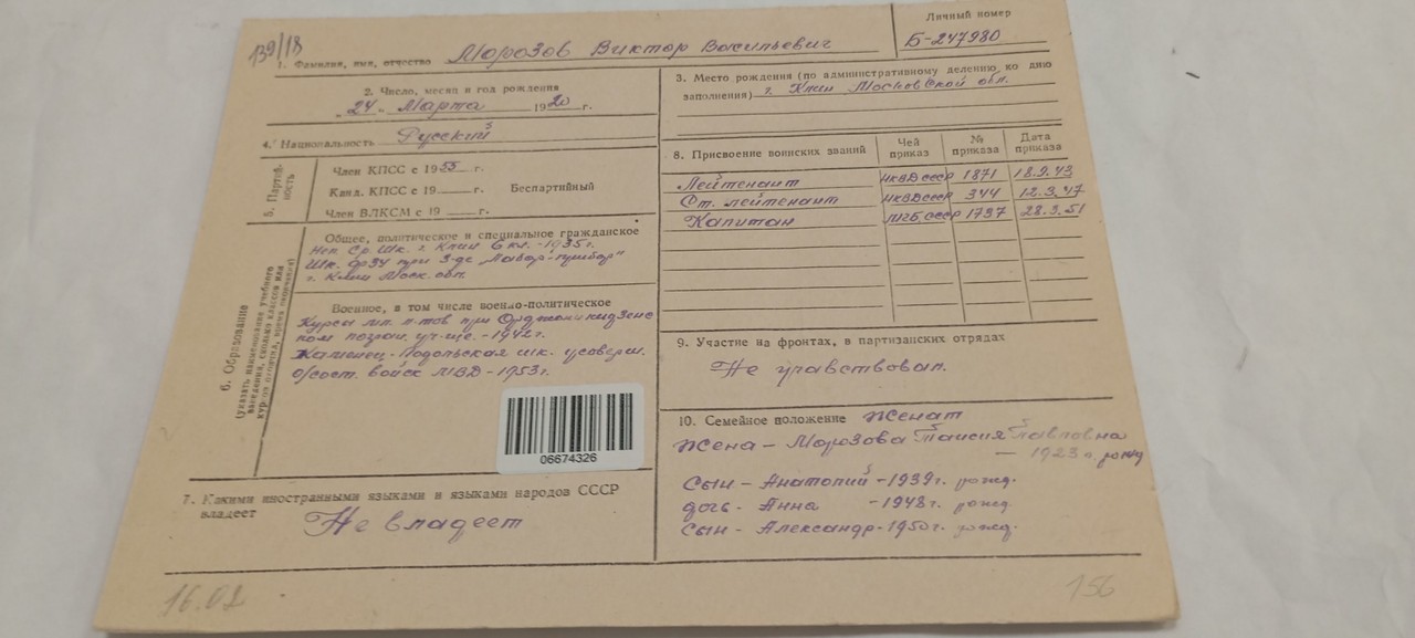 12 марта 1947 года Виктор Васильевич получил воинское звание старший лейтенант.