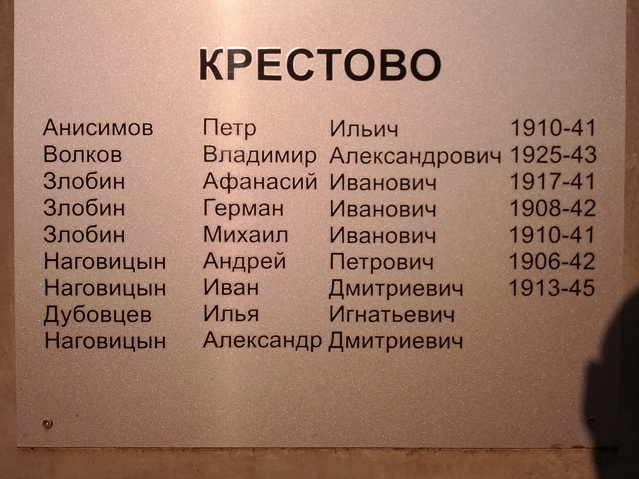 Наговицын Александр Дмитриевич родился в 1909 г. в д. Крестово Верхне-Парзинского с/с Глазовского р-на Удмуртской АССР в крестьянской семье. Окончил 4 класса. Помогал родителям. В 19 лет женился. От совместного брака родились 7 детей, двое в возрасте 3-х и 4-х лет умерли. Работал председателем Верхне-Парзинского с/с. За хорошую работу награждали ружьём, велосипедом, грамотами. Приглашали работать в районную администрацию, но отказался, т.к. прокормить 5 детей в городе тяжело. В первые дни войны был призван в Красную армию. Был дважды ранен. Погиб в бою 29.12.1942 г. в балке Бирючая Карповского р-на Сталинградской обл. Похоронен в братской могиле с. Карповка Городищенского р-на Волгоградской обл. В с. Верхние Парзи установлен памятник землякам, погибшим в Великой Отечественной войне. Вечная память!