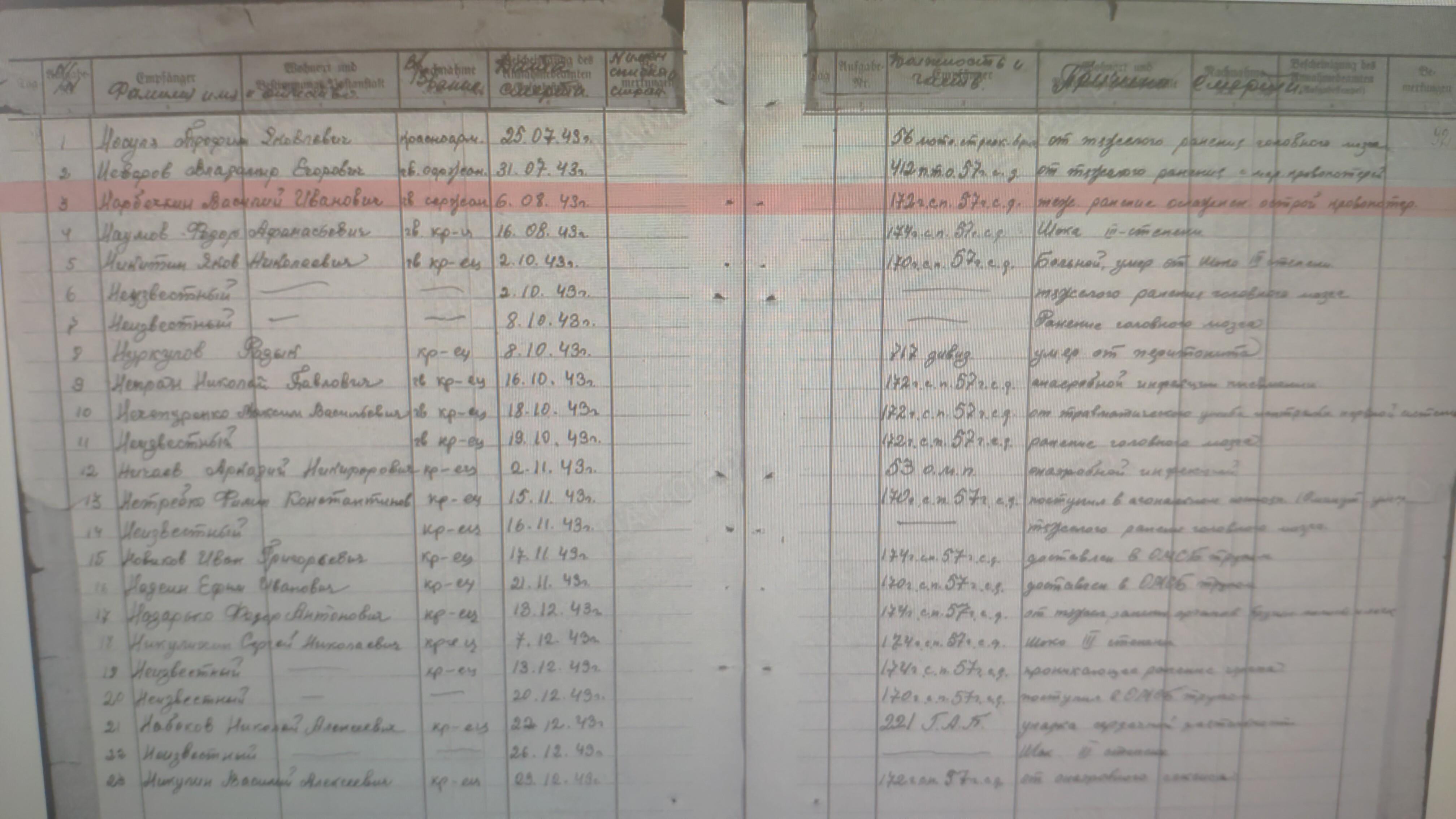 место смерти: Украинская ССР, Харьковская обл., Изюмский р-н, с. Бульбовка, юго-западнее, 2500 м, 300 м от дороги Пески-Семеновка, с правой стороны, лес