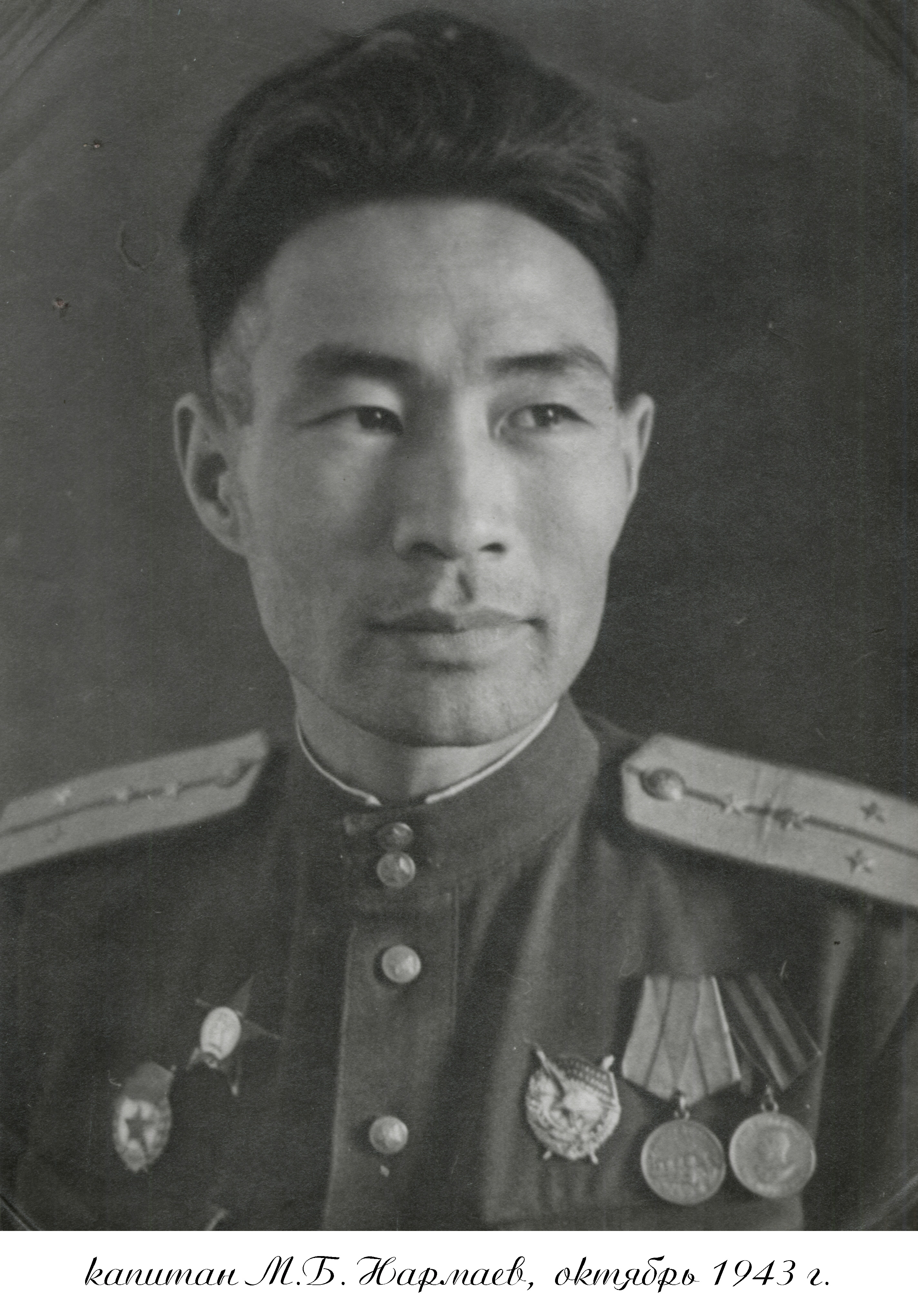 медалями. После демобилизации в декабре 1945 г. гвардии капитан М. Б. Нармаев