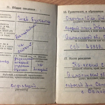 Место рождения: Казахская ССР, Акмолинская обл.,Атбасарский р-н, дер. Самарка.
