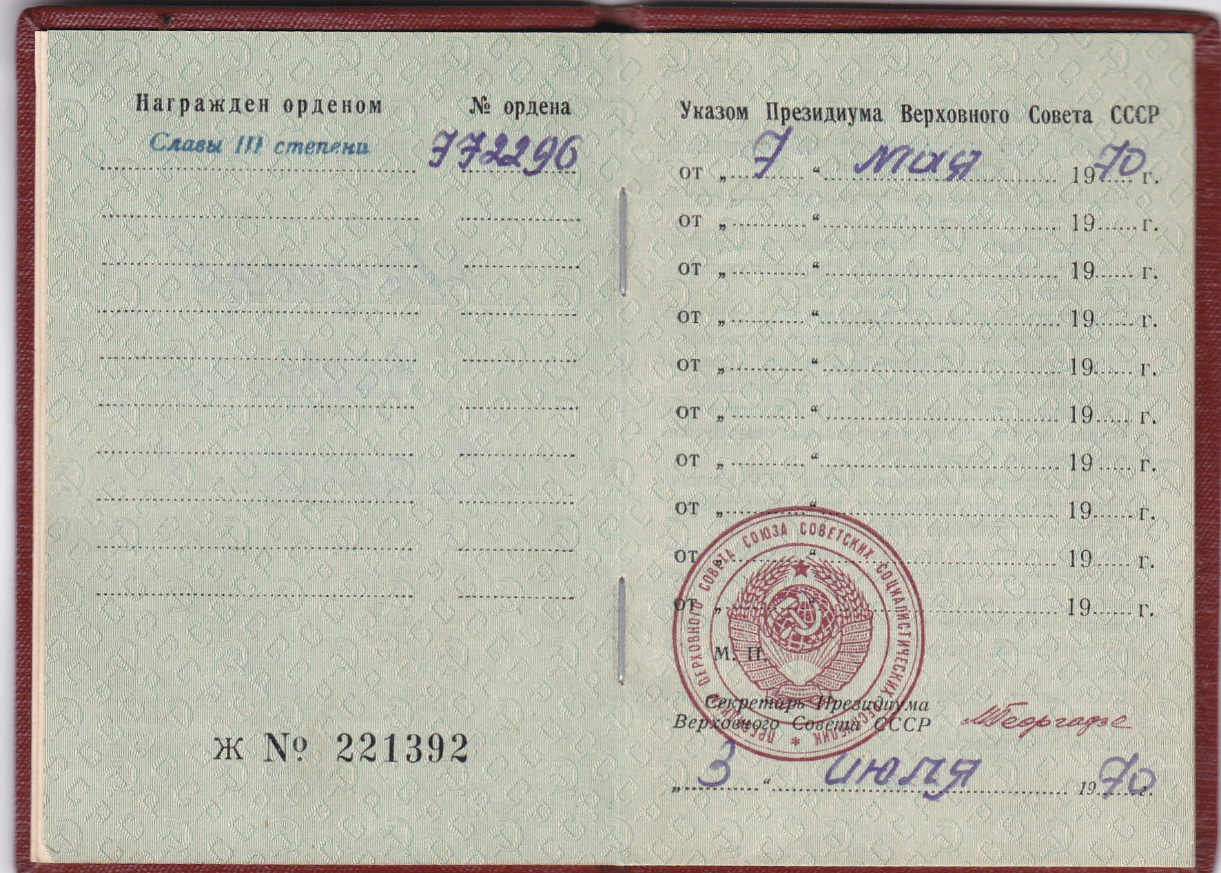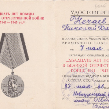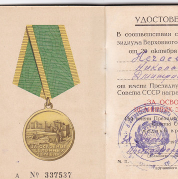 В мирное время награждён медалями "За трудовое отличие", "За освоение целинных земель", "Ветеран труда", знаком "Отличник социалистического соревнования сельского хозяйства РСФСР".