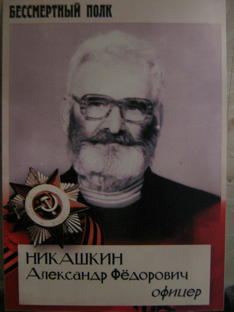 Гвардии капитан Никашкин Александр Фёдорович : связь через огонь и воду Никашкин Александр Фёдорович родился 27 марта 1917 года в маленькой деревне Атерский Ключ (Молотовская область). Его детство прошло в тяжёлые годы революции и гражданской войны. Но главное испытание ждало его впереди — Великая Отечественная война. Мой прадедушка сначала служил связистом под Сталинградом. Войска остро нуждались в устойчивой связи — без неё командиры теряли управление боем, артиллерия не могла бить точно. Прадедушка прокладывал линии под бомбёжками, чинил разорванные провода, иногда под огнём ползком добирался до повреждённого участка. Но один эпизод запомнился ему на всю жизнь — переправа через Дон в апреле 1942 года. Немцы обстреливали берег, переправиться было почти невозможно. Но связь была нужна как воздух. И тогда мой прадедушка, рискуя жизнью, переплыл реку с катушкой провода, чтобы восстановить связь между частями. Холодная вода, пули, рвущиеся снаряды — но он сделал это. Позже его перевели в разведку — он стал заместителем командира роты связи 174-го гвардейского полка (57-й гвардейской дивизии, 63-й армии, Юго-Западного фронта). Его бойцы занимались корректировкой артиллерийского огня— пробирались в тыл врага, находили вражеские батареи, танки, укрепления и передавали точные координаты нашим орудиям. Мой прадедушка прошёл всю войну, закончил её в звании гвардии капитана, с боевыми наградами. После Победы вернулся к мирной жизни, работал, растил детей и внуков. Ушёл из жизни 7 июля 2011 года, но для нас он остаётся живым — в памяти, в семейных историях, в его скромных, но таких важных рассказах.