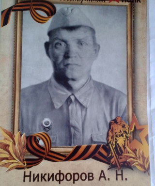 Никифоров Александр Никифорович родился в 1905 г. в селе Высокое Рязанской области .Сараевского(Муравлянского) района. В 1941 году призвался в РККА. Служил в 127 разведовательной роте,52-ой мотострелковой дивизии(2-го формирования),41 армии.калининского полка.Учавстовал в Первой Ржевско-Сычевской стратегической наступательной операции. Убит в бою в городе Ржеве 16 октября 1942 года. Похоронен на северо-восточной окраине города Ржева в братской могиле "Курган"(там числятся похороненными его сослуживцы,т.к. самого его разорвало в бою на куски).