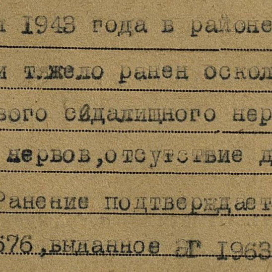 Комиссован в марте 1944 года с 3 группой инвалидности. Награжден медалью "ЗА ОТВАГУ" приказом № 01052/н от 22.07.1945года. Дата подвига 25.02.1943 г.