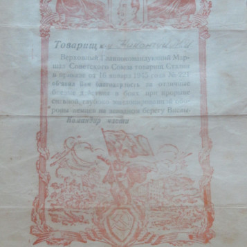 - 16 января 1945 г. Благодарность «за отличные боевые