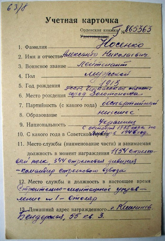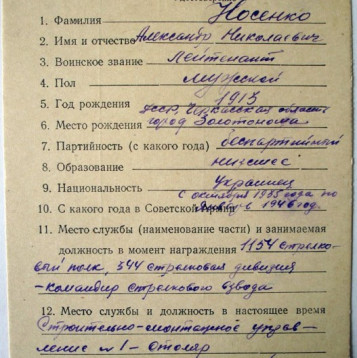 армии от 07.03.1945 Носенко было присвоено воинское звание