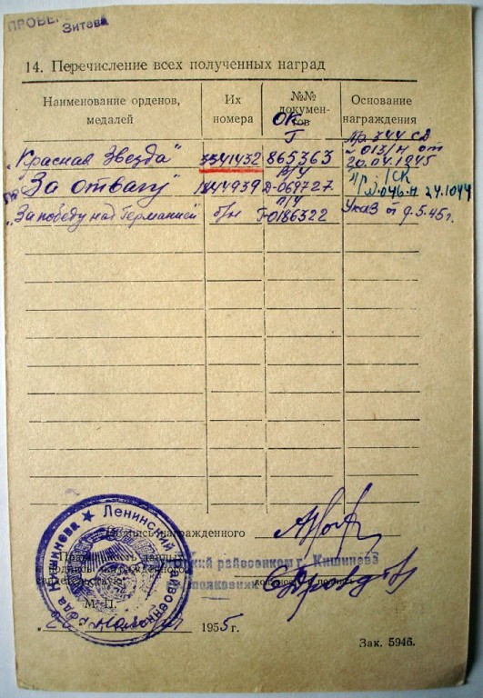 Из наградного листа: