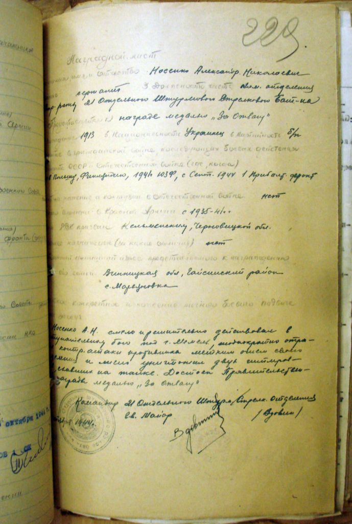 "Товарищ Носенко А.Н. смело и решительно действовал в