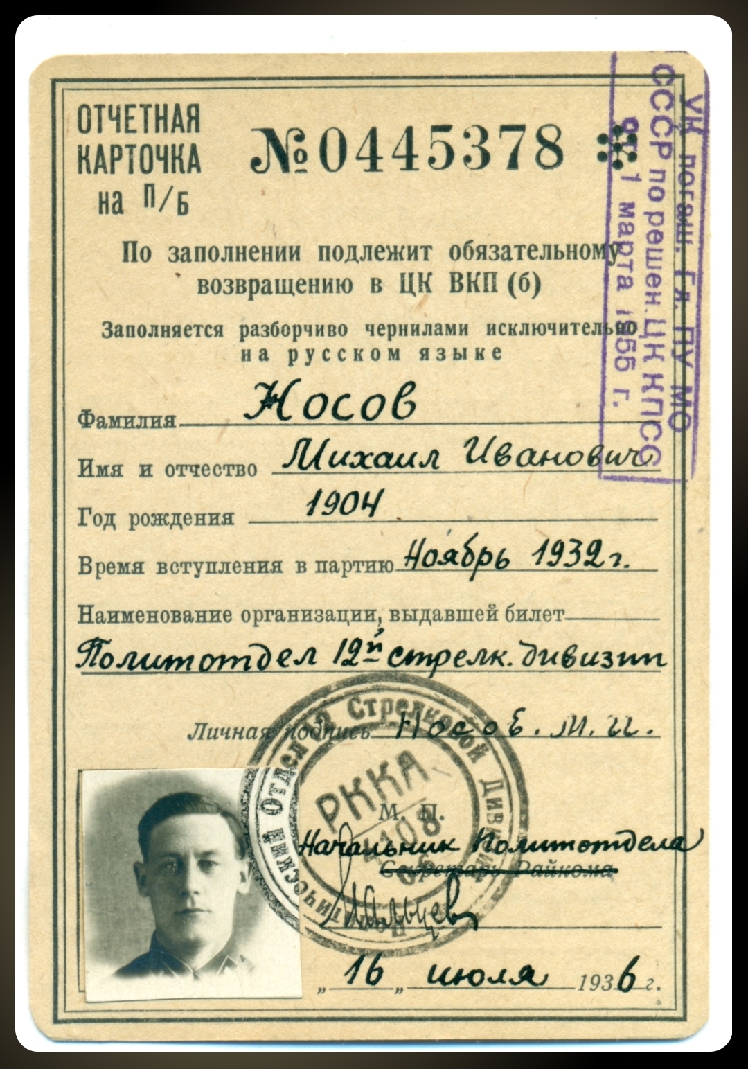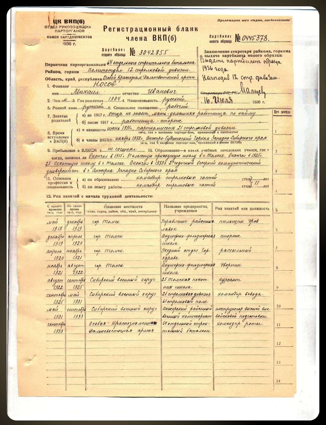 Номер партийного билета ВКП(б): 0445378 Согласно найденным документам числится пропавшим без вести 03 июля 1942 года в городе Севастополе (сканы прикреплены в документах)