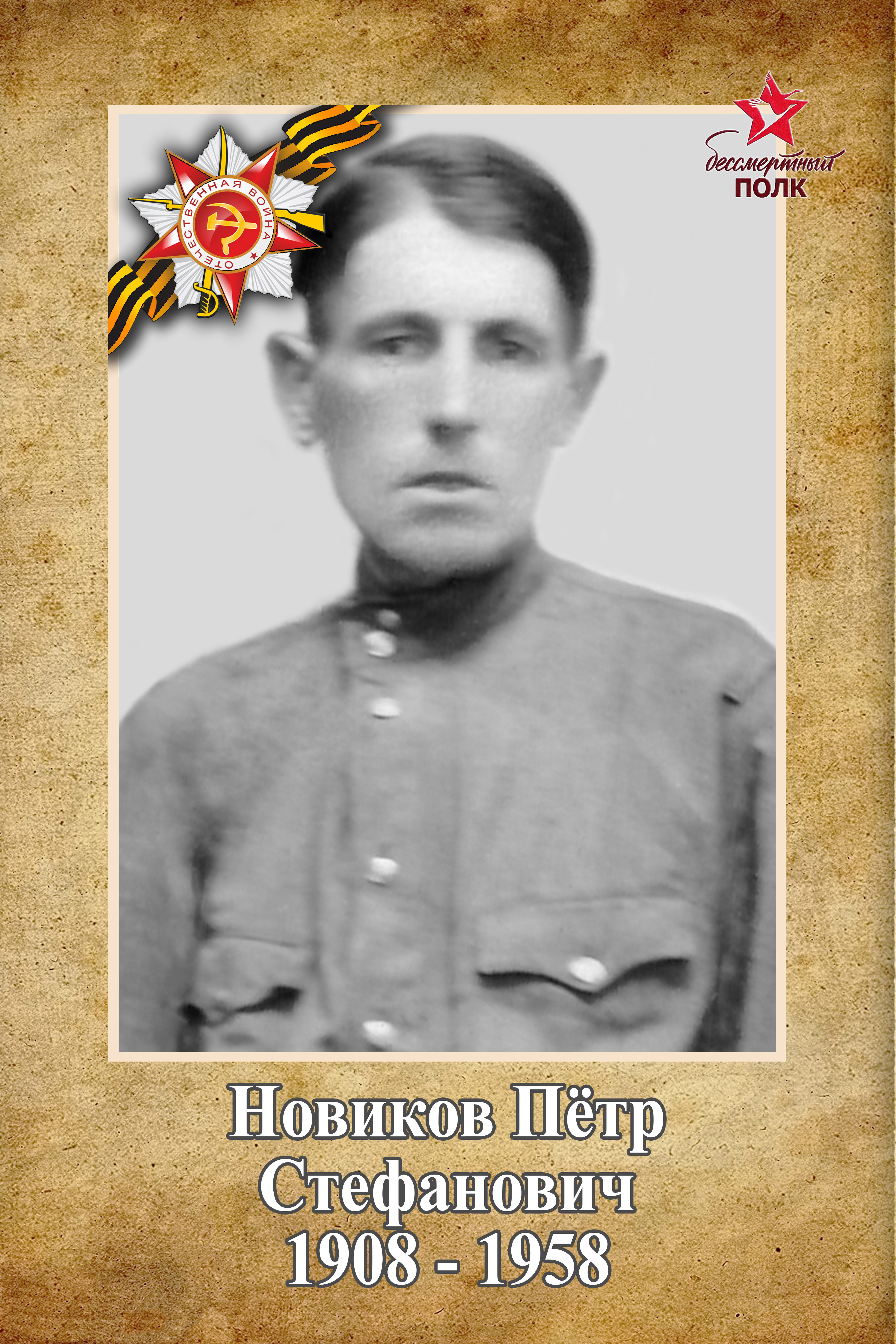 Новиков Пётр Стефанович родился в 1908 году предположительно в деревне Артёмово, Лиозненского района, Витебской области. Рано лишился матери, затем отца. Детство было трудное.