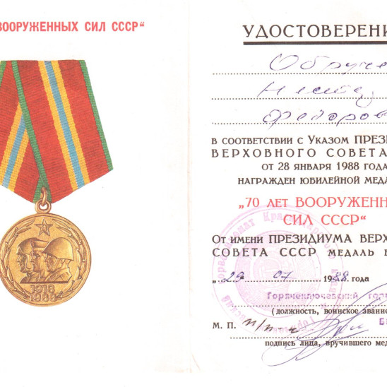 Ушел на фронт в 1942 году, был призван в ст. Суздальской Апшеронского района, вернулся в 1945 году.