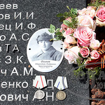 цветов. На месте отсутствующих на плите мемориала имени и отчества партизана