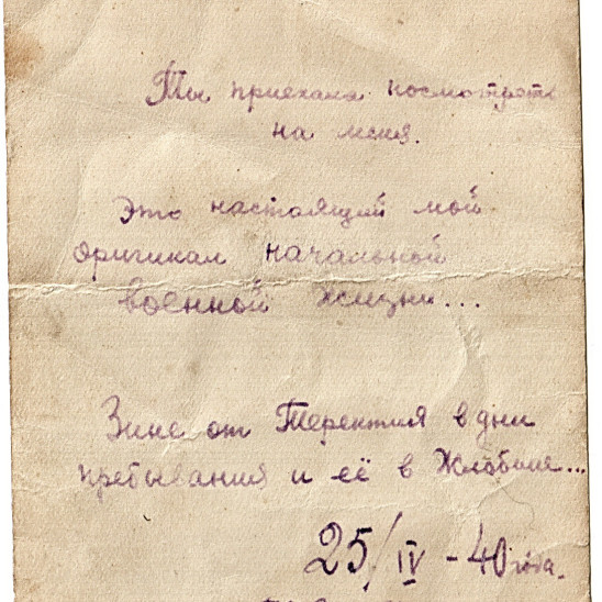25 апреля 1940 г. Запись сделана рукой Зинаиды, которая ездила