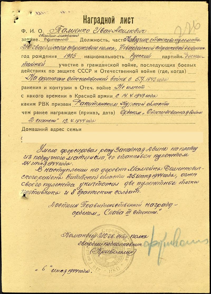 Палиенко Иван Акимович родился в 1905 году. В семье было четверо детей, родители всю жизнь работали в колхозе. Иван Акимович с малых лет был приучен к труду, помогал родителям, бывал с ними в полях, ухаживал за большим хозяйством. Когда появилась своя семья, уже работал бригадиром в колхозе. Семейная жизнь выдалась трудная. От скарлатины умерли маленькие сын и дочка, вскоре после их смерти тяжело заболела и умерла жена, оставив двоих дочерей на воспитание отцу. Незадолго до войны встретил другую женщину, она и стала матерью девочкам Тане и Поле. А затем, семье появилось еще трое детей- дочь Надя и два сына Коля и Шура.