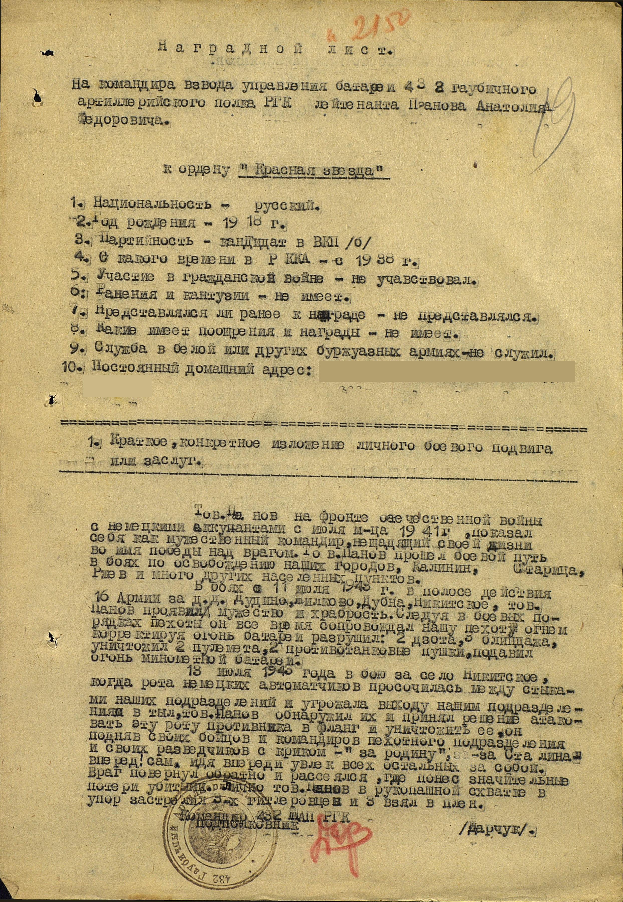 обратно и был уничтожен. Анатолий Федорович лично в рукопашной схватке
