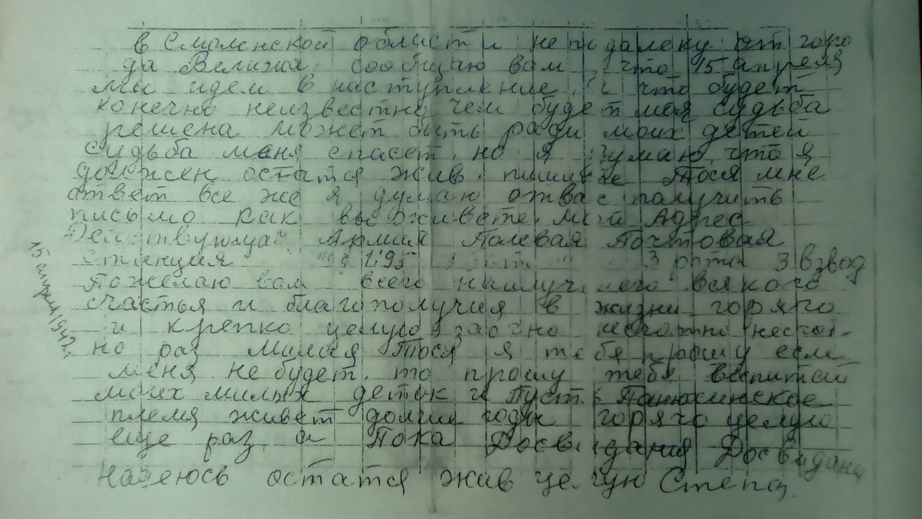 О тех событиях и о месте захоронения дедушки нам сообщили краеведы средней школы №1 г. Велижа, Смоленской обл.
