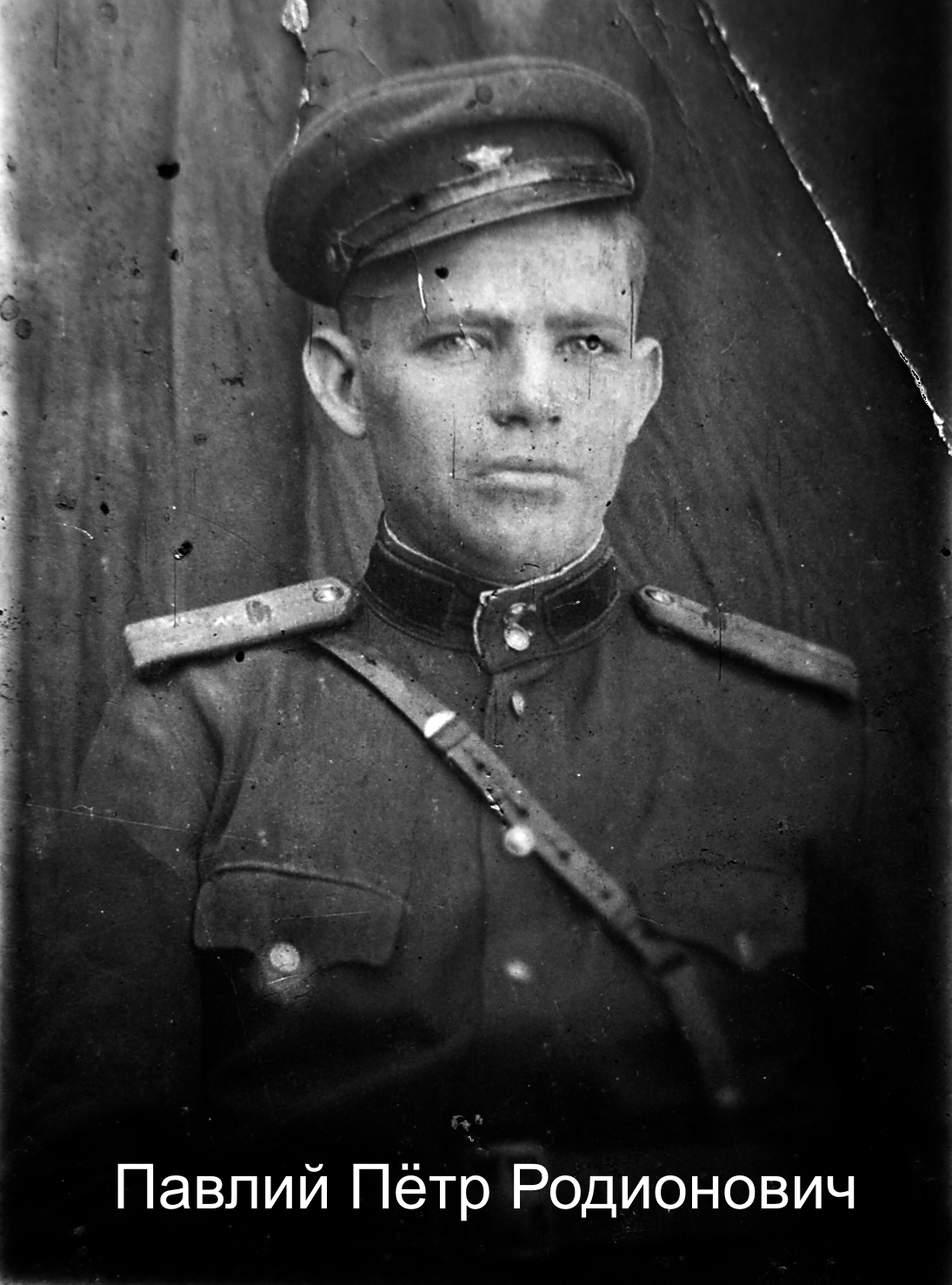 Пётр Родионович принимал участие в штурме так называемой «Голубой линии». Солдат до сих пор вспоминает кубанские плавни, залитые водой окопы, сырость, холод. В июне 1943 года остатки бригады были преобразованы в стрелковый полк и направлены в распоряжение 108 гвардейской дивизии 4-го Украинского фронта. П.Р.Павлий участвовал в боях в районе города Мелитополя.Запомнил он один из эпизодов, произошедших там. Освобождая село Виноградное, был оглушён и потерял сознание, его подразделение отошло на другое направление, а Павлия считали погибшим. Он лежал на окраине села под комбайном, противники его не заметили, а когда пришёл в себя, то понадеялся, что село освобождено.Кругом было тихо, он встал и пошёл по улице села, вдруг услышал немецкую речь и увидел солдата. Быстро скрылся за стеной дома и, пятясь, стал уходить от опасного места, чтобы не попасть в плен. Вскоре в роще услышал стрельбу и русское «ура!». Но под мощным огнём немецких миномётов советские солдаты залегли и не могли подняться в атаку. Павлий, находившийся в тылу немецких солдат, не растерялся, при нём были гранаты. Он быстро подполз к немцам, метнул одну за другой две гранаты и подавил расчёт миномёта. Дорога нашим воинам была открыта, подразделение быстро быстро поднялось и продолжило атаку. Павлия увидел политрук, поблагодарил, описав (в записке) подвиг, передал записку Павлию, чтобы он вручил её своему командиру части, так как Павлий помог военчасти (не той, в составе которой служил, а соседней).За этот подвиг Павлий был награждён медалью «За отвагу». Получил он её только в 1946 году в Либкнехтовском военкомате. А на второй день после этог случая 10 октября 1943 года Павлий был ранен в левое плечо.Третий раз после излечения в госпитале г.Нальчика Пётр попадает на фронт в составе 1-го Украинского фронта 28-й армии и принимает участие в Корсунь-Шевченковской операции.В феврале 1944 году – очередное ранение – в кисть левой руки. Лечение в Железноводском госпитале. В мае 1944 года Пётр Родионович направлен в 21 отдельный танковый полк, располагавшийся в г.Пятигорске. Там он окончил курсы танкистов и со специальностью командира орудия танка Т-34 в четвёртый раз попадает на фронт.12 декабря 1944 года он был зачислен в состав 93-й отдельной Краснознамённой гвардейской Житомирской орденов Б.Хмельницкого и А.Невского танковой бригады 4-й танковой армии, где и был до конца войны. Пётр Павлий принимал участие во взятии Берлина. 9 мая встретил в Праге, куда накануне была спешно переброшена его танковая бригада.За активное участие в боях при взятии Берлина Пётр Родионович был награждён орденом Славы 3-й степени. Вернулся с войны он в ноябре 1945 года. Пётр Павлий также награждён медалями «За взятие Берлина», «За освобождение Праги», а также орденом Отечественной войны 1-й степени.После войны работал в колхозе «Полярная Звезда» агрономом. В 50-е годы Пётр Родионович переезжает в село Казьминское где проработал в должности главного агронома вплоть до ухода на пенсию.За трудовые успехи был награждён орденом «Знак Почёта». Находясь на пенсии, Пётр Родионович являлся постоянным секретарём Совета ветеранов войны и труда с.Казьминского, и всегда активно участвовал в воспитании подрастающего поколения.