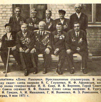 Виктор Мавринский, воспитанник радиоклуба «Колос» имени Героя Советского Союза Якова Павлова, - писал, - Уличные бои в сентябре 1942 года в Сталинграде носили особенно ожесточенный характер в центре города, на участке 13-ой гвардейской дивизии А. И. Родимцева. К вечеру 25 сентября обстановка резко обострилась, большая часть зданий, примыкающих к площади 9-го января оказалась в руках врага. Но один дом под №61 вызывал сомнения. Разведать, в чьих он руках находится, приказано было гвардии сержанту Якову Павлову и его товарищам Александрову, Черноголову и Шаповалову. Вот как описывает все дальнейшие события в очерке «Дом Павлова» Юлий Чепурин, фронтовой корреспондент 62-й армии. «Если удастся зацепиться за него и превратить дом в сильный опорный пункт, тогда можно будет держать площадь под контролем. Как оказалось, в доме были гражданские: женщины, дети, а также раненые бойцы 13-й гвардейской дивизии во главе с санинструктором Калининым. Но к зданию уже приближалась большая группа немецких автоматчиков. Сражение за дом началось. Павлов послал санинструктора Калинина в штаб полка на счет подмоги и она пришла во главе с гвардии лейтенантом Иваном Афанасьевым, коммунистом, который был назначен начальником гарнизона. А в штабе полка полковник Елин всю ночь ждал донесений из дома Павлова, как «нечаянно» он назвал его, не подозревая, что под этим названием он войдет в Историю и станет известным всему миру. Лейтенант Афанасьев видел, что душой обороны был не он, а этот скромный паренек. Тот факт, что Павлов первым ворвался в этот дом и сумел со своими бойцами отстоять в первую ночь, окружил личность Якова Павлова таким ярким ореолом солдатской славы, который оказался сильнее установлений Боевого Устава пехоты. Вот поэтому, коммунист Иван Афанасьев, организуя оборону дома, он тактично как бы отошел в тень, отведя первую роль в этой боевой операции гвардии сержанту Якову Павлову». Атаки противника все усиливались и когда в ход пошли ручные гранаты произошло чудо: полк «Катюш» дал залп по скоплениям фашистов вокруг дома Павлова. Впервые о героях-бойцах 13-й гвардейской дивизии в Сталинградском сражении рассказала газета «Правда» за 19 ноября 1942 года --- очерк «Дом Павлова». За несколько дней до окончания обороны знаменитого дома-крепости раненого лейтенанта Афанасьева переправили в госпиталь. Слава догнала его позже. Командование на себя принял сержант Яков Павлов, который и остался в истории навечно. Яков Павлов, будучи раненым, не покинул дом до самого конца его обороны. 58 дней и ночей продолжалась оборона дома. Сам Яков узнал о присвоении ему звания Герой Советского Союза в апреле 1945 года. Гвардии лейтенант Иван Филиппович Афанасьев был удостоен ордена Ленина, его воспоминания легли в основу книги «Дом солдатской славы». Мало кто знает, что дочь легендарного генерала А.И. Родимцева, Наталья Матюхина встречалась с двумя защитниками Дома Павлова, чьи имена высечены на стене дома: Ильей Вороновым (пулеметчик) и Камалджаном Тургуновым. Сам Яков Федотович Павлов неоднократно бывал в городе-герое Волгограде. Его имя носит радиоклуб «Колос» (руководитель Валерий Васильевич Полтавец), который воспитал множество спортсменов. Именно Яков Павлов в 1980 году подал идею поиска Валерию Полтавцу: разыскать в эфире радистов и участников Сталинградской битвы, к
