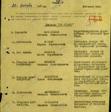 отвагу (по документам должен быть выдан орден Красной звезды) Я. Ф. Павлову (20.10.1942),