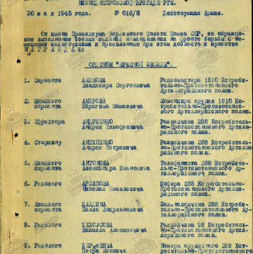 орден Красной звезды Я. Ф. Павлову (15.05.1945), когда он служил в (288 иптап