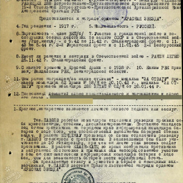 орден Красной звезды Я. Ф. Павлову (30.05.1945), когда он служил в (288