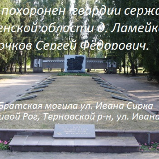 Дата рождения: __.__.1912 Место призыва: Кардымовский РВК, Смоленская обл., Кардымовский р-н Дата поступления на службу: __.__.1943 Воинское звание: гв. сержант Воинская часть: 24 гв. вдсп 10 гв. вдд 37 А 3 УкрФ Даты подвига: 31.01.1944 Наименование награды: Орден Красного Знамени Приказ подразделения №: 33/н от: 09.03.1944 Издан: ВС 37 А 3 Украинского фронта Умер от ран 03 февраля 1944 года.