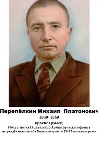 676 стрелковый полк 15 дивизии 13 армии Брянского фронта, в 1943 был тяжело ранен, награжден медалью за боевые заслуги