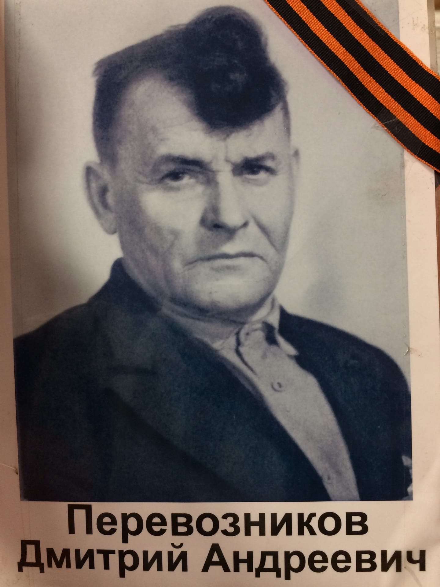 Перевозников Дмитрий Андреевич был призван в армию в 1940 году. Служил на границе с Финляндией. Воевал на фронтах Великой Отечественной в 37 Гвардейской армейской пушечной артиллерийской витебской краснознаменной бригаде в звании Гвардии ефрейтора, радио-телеграфист разведывательного дивизиона.Победу встретил в Кёнигсберге. Награждён: Медаль " За отвагу!, Орден Красной Звезды, Орден Отечественной войны II степени, Медаль «За победу над Германией в Великой Отечественной войне 19411945 гг." и другие. Домой вернулся уже в 1947 году. Потом была долгая жизнь и горькая память о войне, о том, что пришлось пережить, о погибших друзьях...