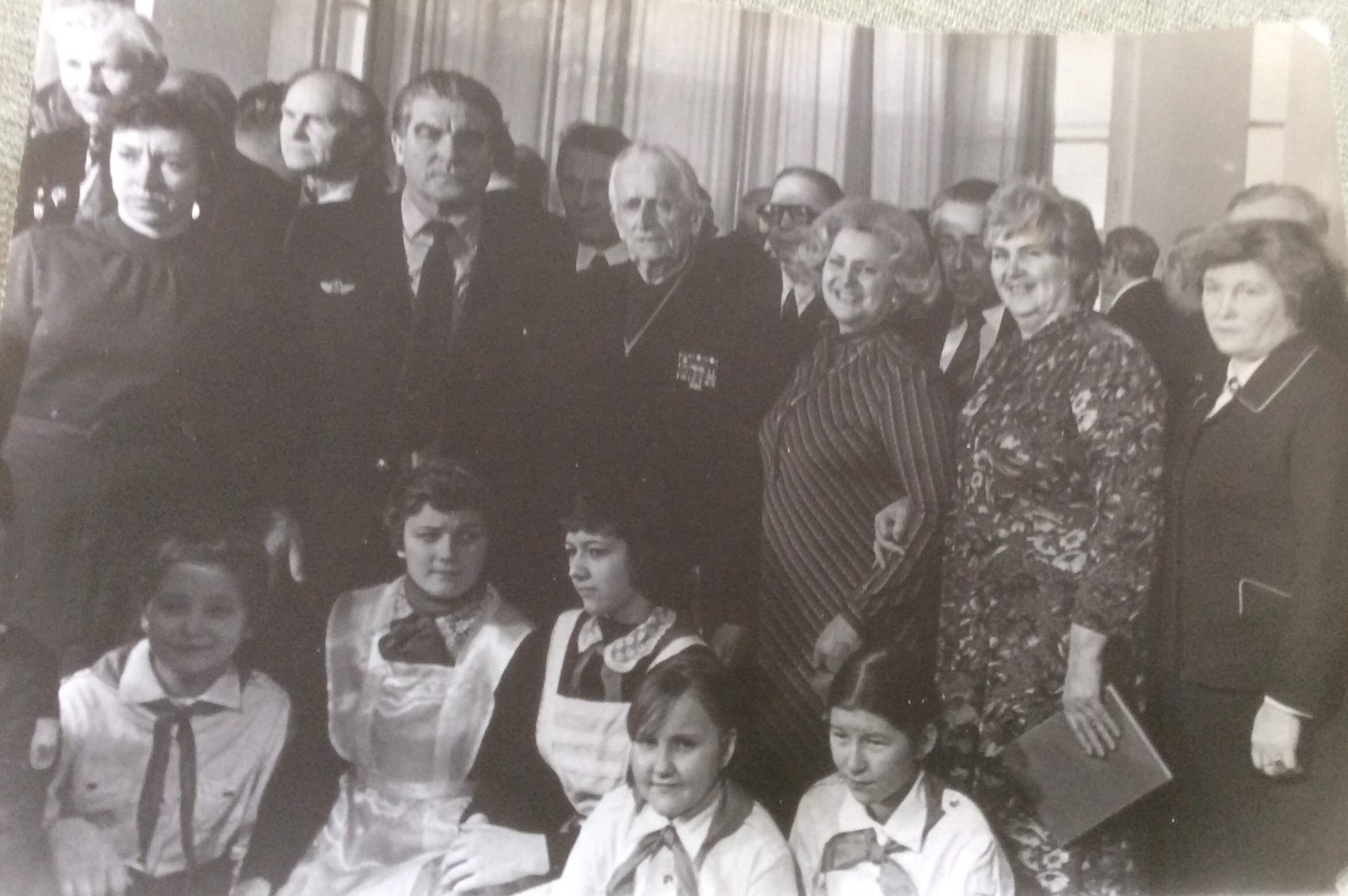 Шли годы. И вот Лидии Алексеевне попалась на глаза заметка в "Красной звезде" о музее "А музы не молчали", созданном в одной из ленинградских школ. И она написала директору Е.Линду:"Помогите разыскать Тамару Немыгину и оставшихся в живых членов команды "Строгий". Вскоре пришёл ответ: музей приглашал Лидию Алексеевну на встречу участников ленинградских фронтовых бригад. Вечер вёл Евгений Алексеевич Линд:"Я хочу вам рассказать о двух девочках,- и он поведал уже знакомую нам историю-Разрешите вам их представить. Педагог- хореограф Лидия Алексеевна Положенская и музыкальный работник детского сала Тамара Владимировна Немыгина." Две женщины в разных рядах одновременно охнули и бросились друг к другу. А затем Линд пригласил на сцену бывшего командира "Строгого" В.Р.Новака, членов экипажа Михаила Максимовича Литвинова, Виктора Михайловича Абпамова, Петра Васильевича Павловского,Сергея Ивановича Бутенко,Ивана Гордеевича Хнюпу,Давида Абрамовича Чалык.Моряки со слезами приветствовали шефов.