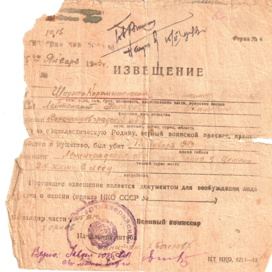 1015 артиллерийский полк 397 стрелковой дивизии (II) (1015 ап), погиб 12 января 1943 года. Похоронен: