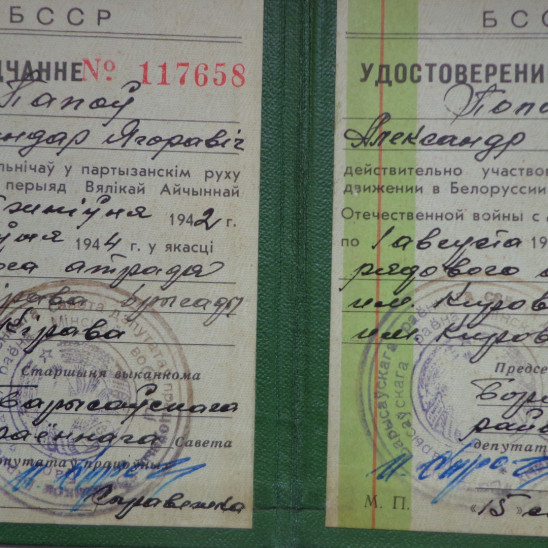Боевой путь ветерана Попов Александр Егорович родился в 1913 году в Горьковской области. Служил в системе МВД Кировской области. В 1942 году ушел добровольцем в Красную Армию, закончив курсы партизана – подрывника. Воевал в отряде им. Кирова бригады им. Кирова Минской области в Белоруссии в должности командира отделения. Проявил себя смелым , дисциплинированным бойцом. Награжден медалью «Партизан Отечественной войны II степени», орденом «Красной звезды», медалью «20 лет победы в Великой Отечественной войне», удостоен звания «Партизан Белоруссии». Умер в 1974 году.